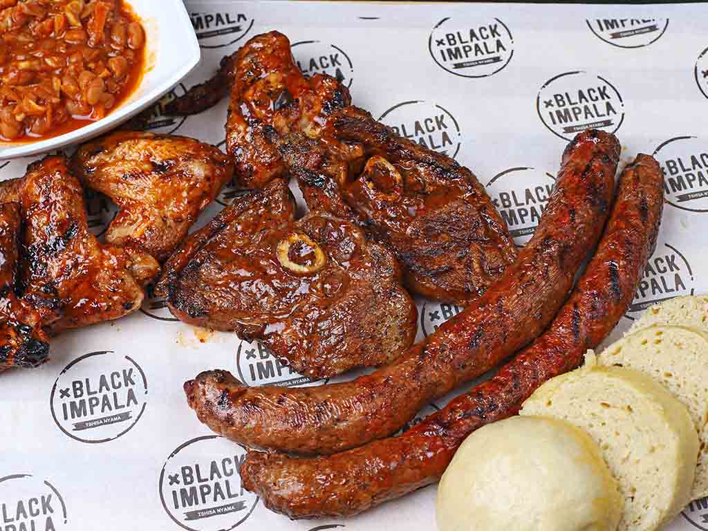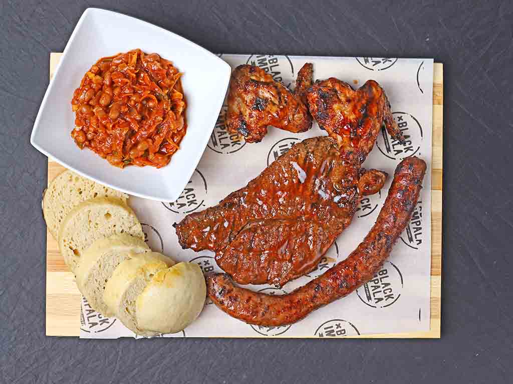4x Riblets, 2x Beef, 2x Pork, 2x Sun Cafe Wors, 2x Chicken Kebabs, Chakalaka & Dumplings